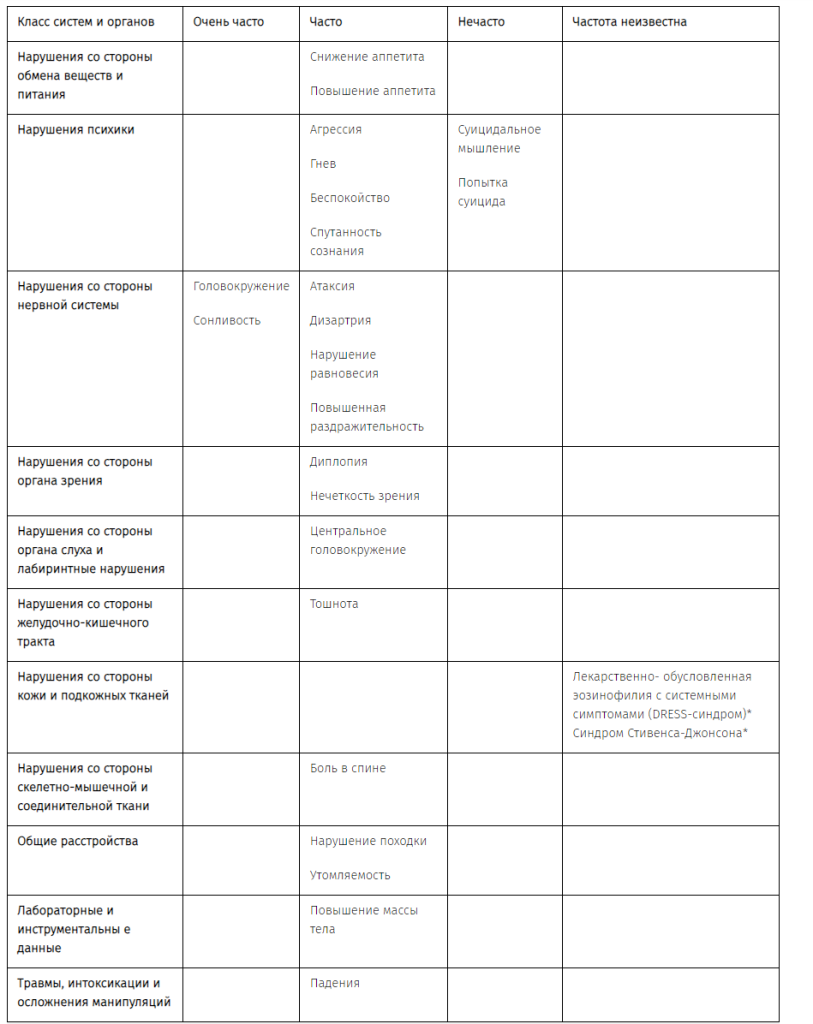 В пределах каждой категории частоты нежелательные реакции представлены в порядке снижения серьезности.