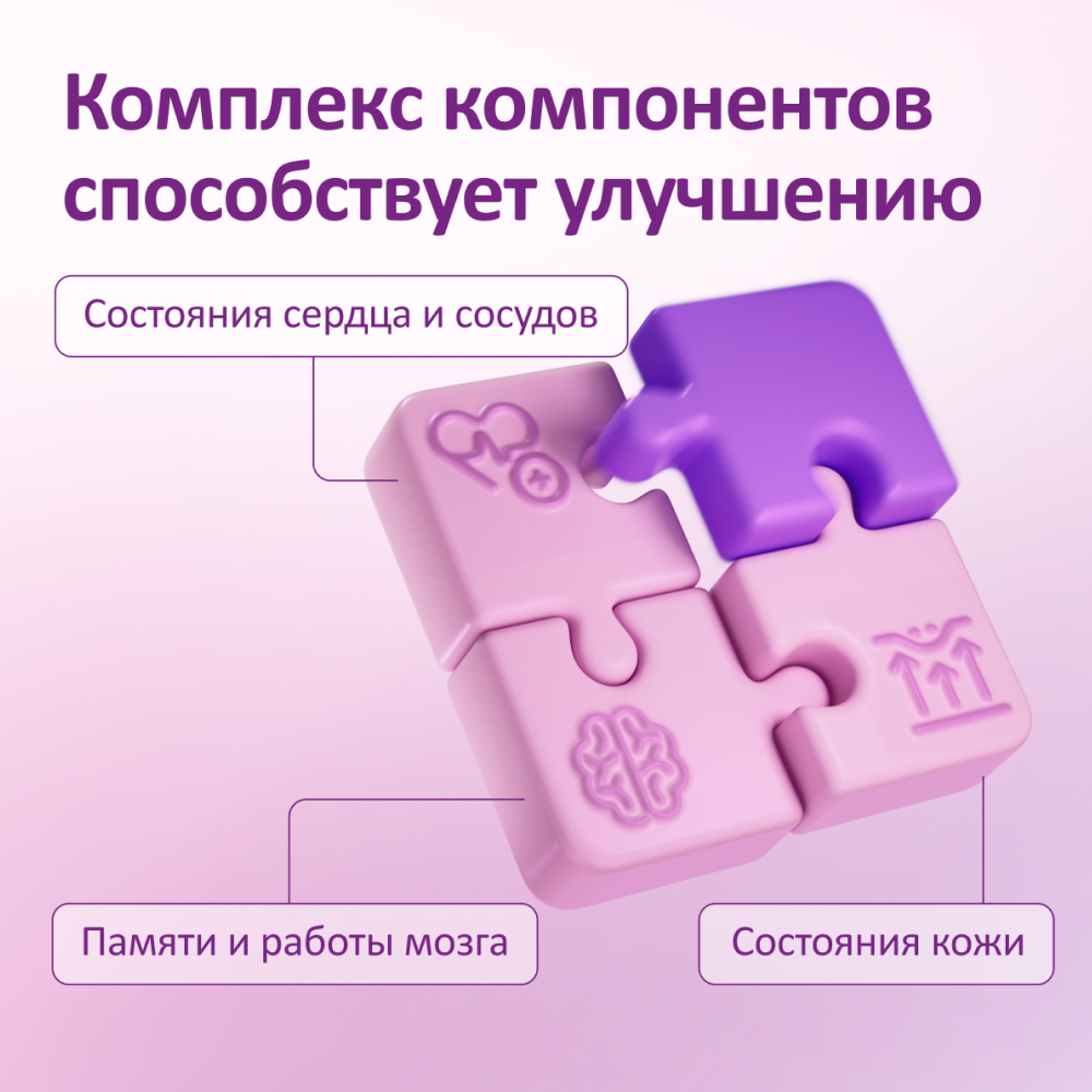 DL-альфа токоферола ацетат, экстракт корня японского горца Polygonum cuspidatum (с содержанием ресвератрола 98%), витамин D3 (среднецепочечные триглицериды, холекальциферол, антиокислитель альфа-токоферол (Е 307)), ароматизатор натуральный «Лимон», подсластитель сукралоза (Е955).