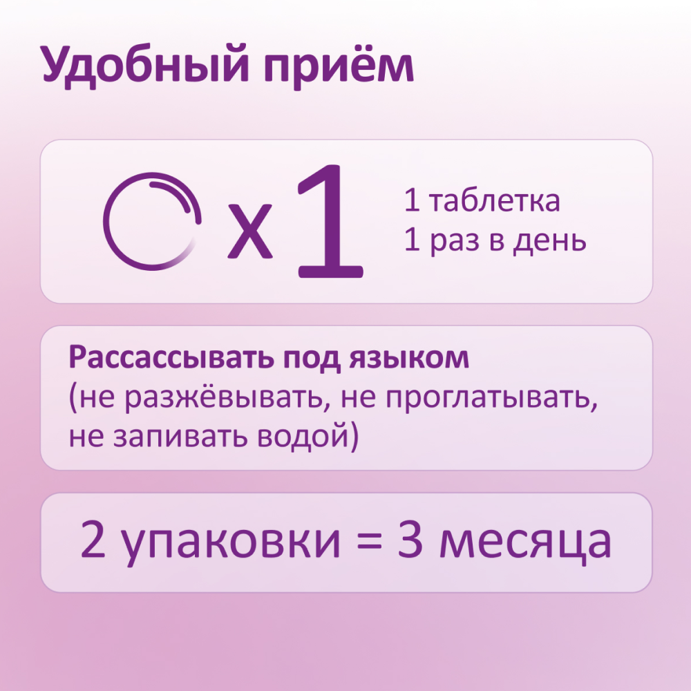 Взрослым по 1 таблетке 1 раз в день во время еды до полного рассасывания. Продолжительность приема: 1 месяц.