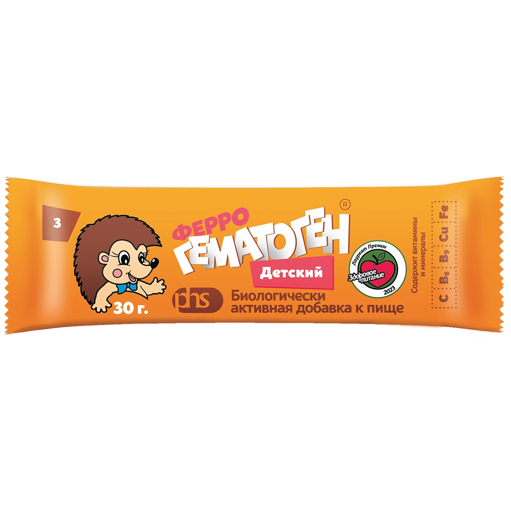 «Феррогематоген Детский» — это уникальный гематоген, содержащий витаминно-минеральный комплекс, который обеспечивает оптимальные условия всасывания железа и дальнейшего транспорта его к месту синтеза эритроцитов.