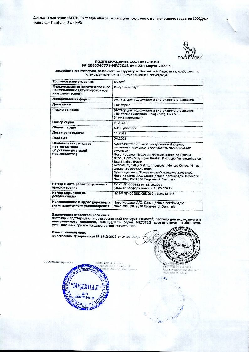 Препарат Фиасп® в предварительно заполненной шприц-ручке ФлексПен® предназначен для использования с одноразовыми иглами Новофайн® или Новофайн® Плюс.