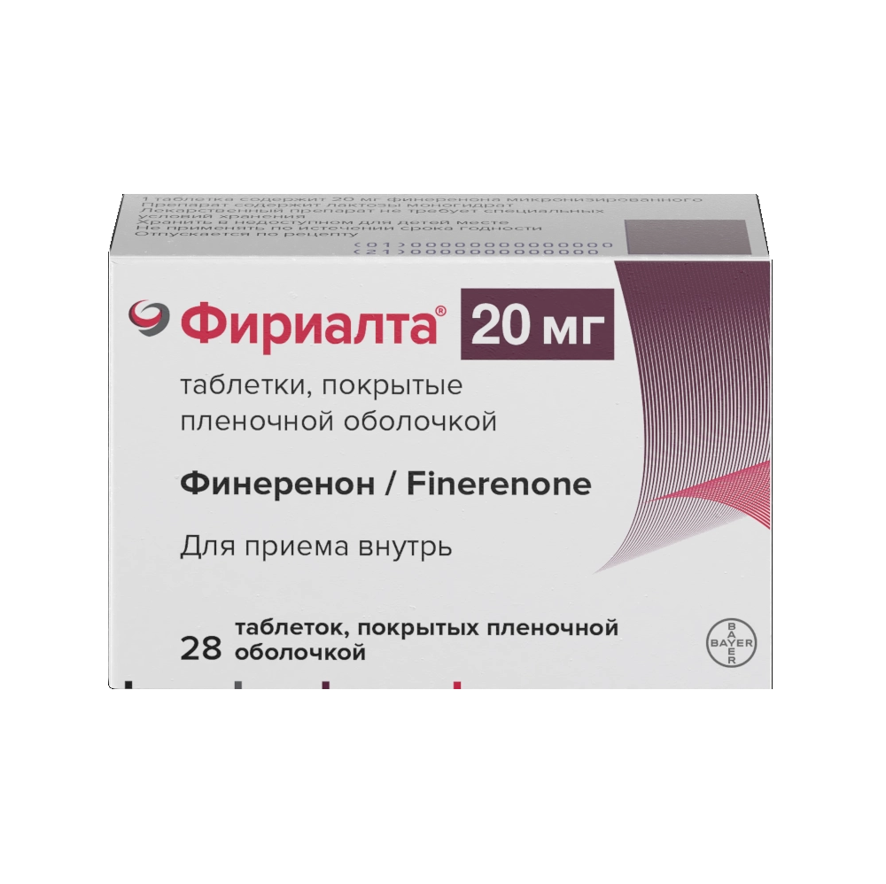 Действующее вещество: финеренон микронизированный 20 мг.