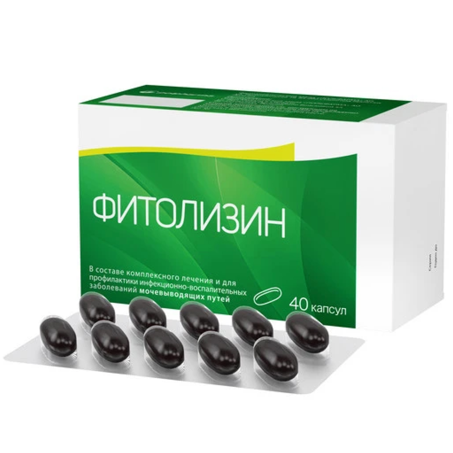 оболочка капсулы: желатин, сорбитол жидкий частично дегидрированный (Е 420), вода очищенная.Препарат Фитолизин применяется в составе комплексного лечения и для профилактики инфекционно-воспалительных заболеваний мочевыводящих путей и нефроуролитиаза (мочекаменной болезни с образованием мелких конкрементов, так называемого «песка») у взрослых старше 18 лет.