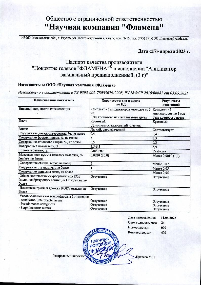Покрытие гелевое Фламена представляет собой оригинальную гелевую композицию. Основой Геля является липосомальный антиоксидантно-фосфолипидный комплекс, полученный по запатентованному методу, придающий этому изделию уникальные биологические свойства.