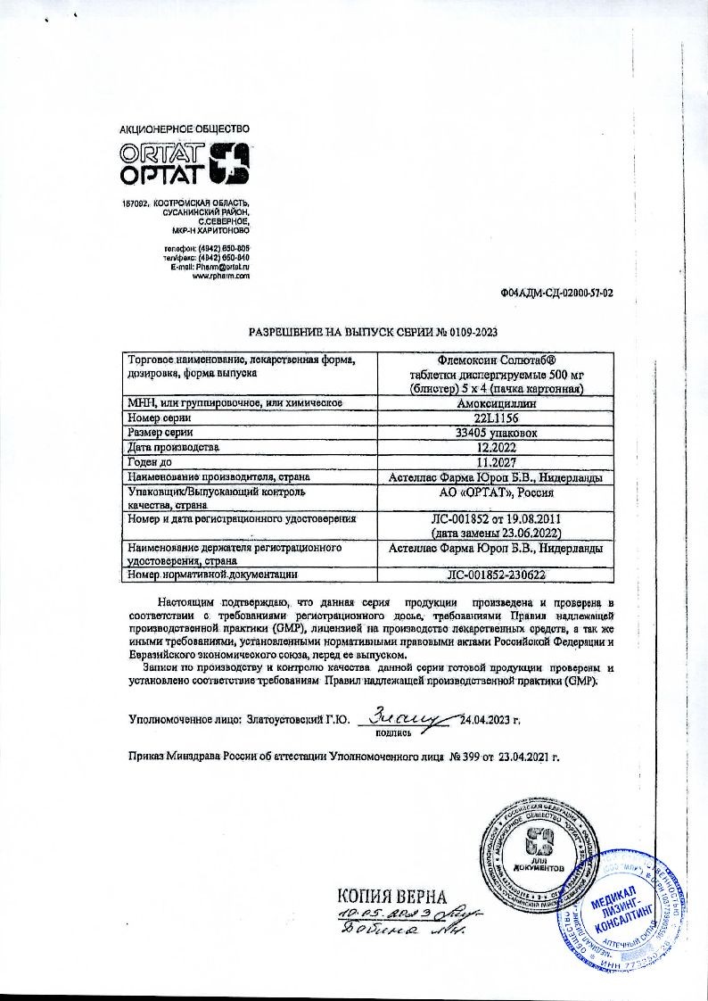Наличие эритродермии в анамнезе не является противопоказанием для назначения препарата Флемоксин Солютаб®.