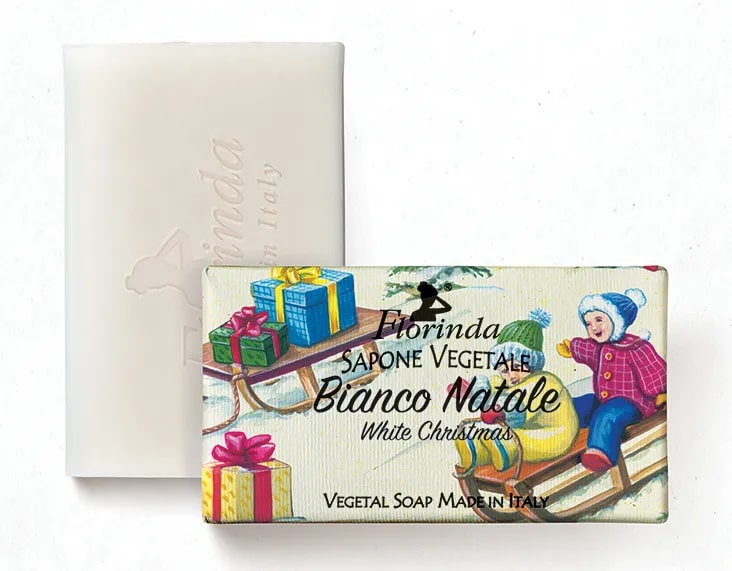 Каждый брусок мыла Florinda Merry Christmas Bianco Natale изготавливается и нарезается вручную, затем ему придаётся окончательная форма и мыло помещается в яркую стильную упаковку из экологичного материала.
