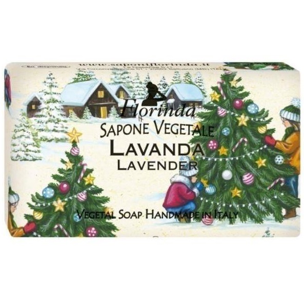 Образует пышную пену, наполненную натуральными растительными эссенциями, активно увлажняющими кожу и делающими ее шелковистой. Благодаря высокому содержанию в составе парфюмерной композиции, мыло обладает неповторимым и ярким ароматом, который создает прекрасное настроение. Мыло в красочной упаковке с Новогодними рисунками итальянских художников - чудесный ароматный подарок который понравится всем!
