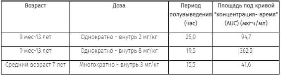 У детей были получены следующие значения фармакокинетических параметров: