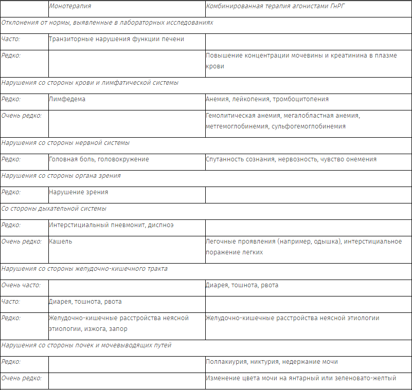 Высокая частота развития гинекомастии, наблюдающаяся при монотерапии флутамидом, была значительно ниже при комбинированной терапии.