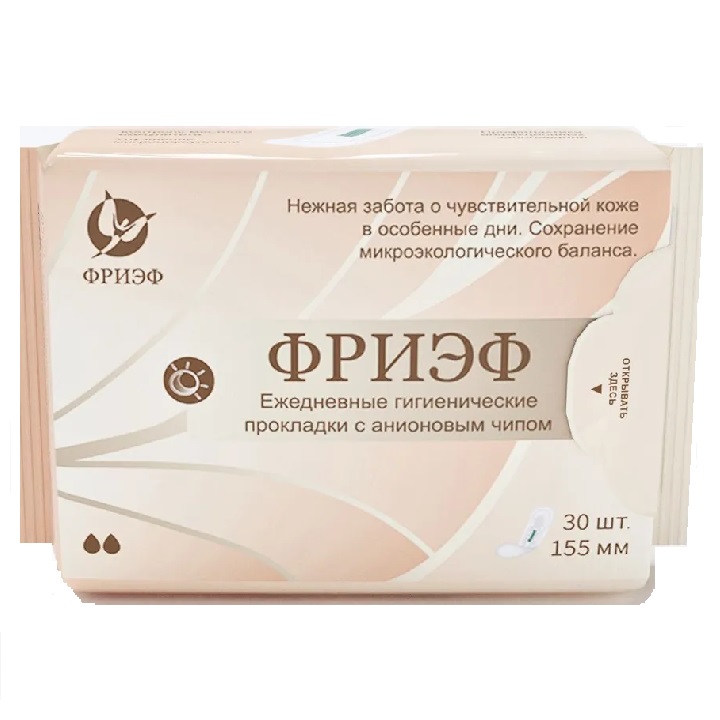 Лучшие друзья девушек в области интимной гигиены – прокладки с анионовым чипом «ФРИЭФ»! Не комкуются, не мнутся, надежно крепятся к белью, нейтрализуют запахи! Имеют мягкий гипоаллергенный хлопковый верхний слой, без химических отдушек и красителей! Моментально впитывают, блокируют внутри жидкость любой консистенции, быстро высыхают!