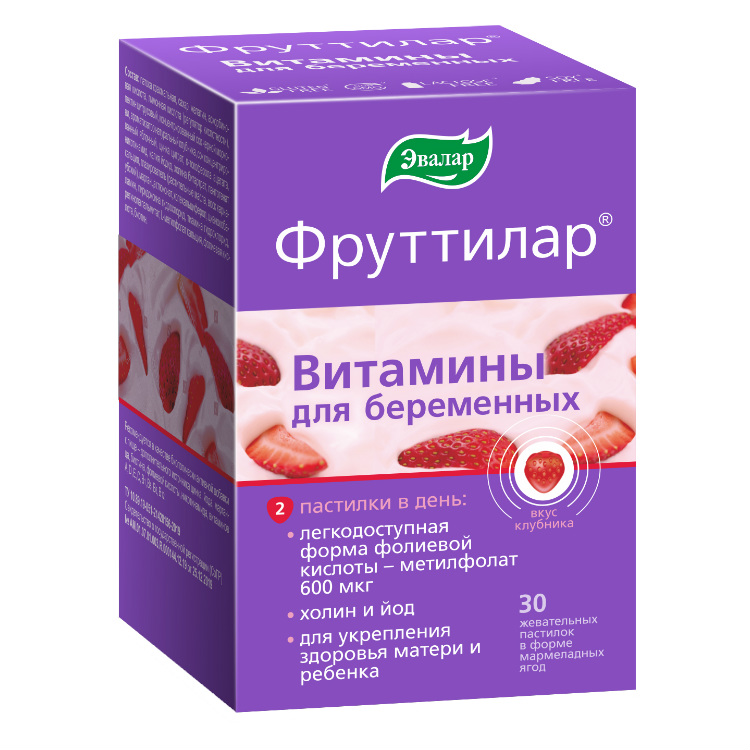 Восполнить недостаток витаминов и минералов и укрепить здоровье матери и ребенка поможет «Фруттилар Витамины для беременных» от компании «Эвалар». Это сбалансированный витаминно-минеральный комплекс, в котором содержится более 15-ти самых необходимых нутриентов для беременных.