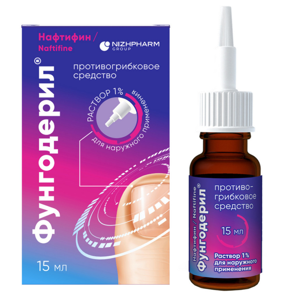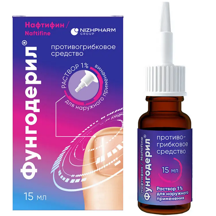 Нафтифин - противогрибковое средство для наружного применения, относящееся к классу аллиламинов. Механизм действия связан с ингибированием сквален-2,3- эпоксидазы, что приводит к снижению образования эргостерола, входящего в состав клеточной стенки гриба. Активен в отношении дерматофитов, таких как Trichophyton, Epidermophyton, Microsporum, плесневых грибов (Aspergillus spp.), дрожжевых грибов (Candida spp., Pityrosporum) и других грибов (например, Sporothrix schenckii). В отношении дерматофитов и аспергилл нафтифин действует фунгицидно. В отношении дрожжевых грибов нафтифин проявляет фунгицидную или фунгистатическую активность в зависимости от штамма микроорганизма. Обладает антибактериальной активностью в отношении грамположительных и грамотрицательных микроорганизмов, которые могут вызывать вторичные бактериальные инфекции. Обладает противовоспалительным действием, которое способствует быстрому исчезновению симптомов воспаления, особенно зуда.