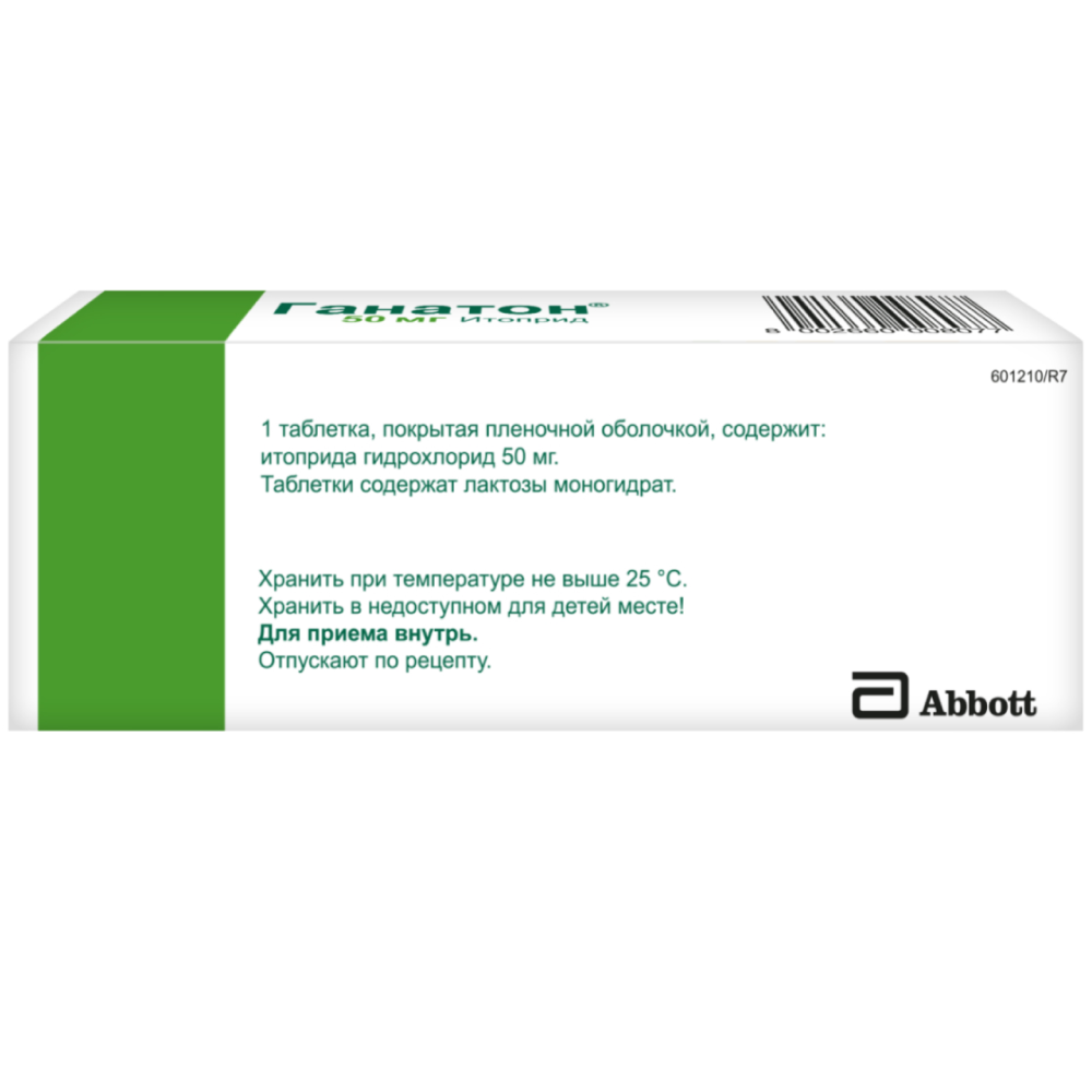 Активное вещество: итоприда гидрохлорид - 50 мг,