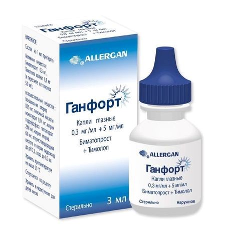 Ганфорт - комбинированный лекарственный препарат, входящие в его состав биматопрост и тимолол снижают внутриглазное давление (ВГД) за счет сочетанного взаимодействия, приводя к значительно более выраженному гипотензивному эффекту по сравнению с эффектом каждого из компонентов в отдельности.