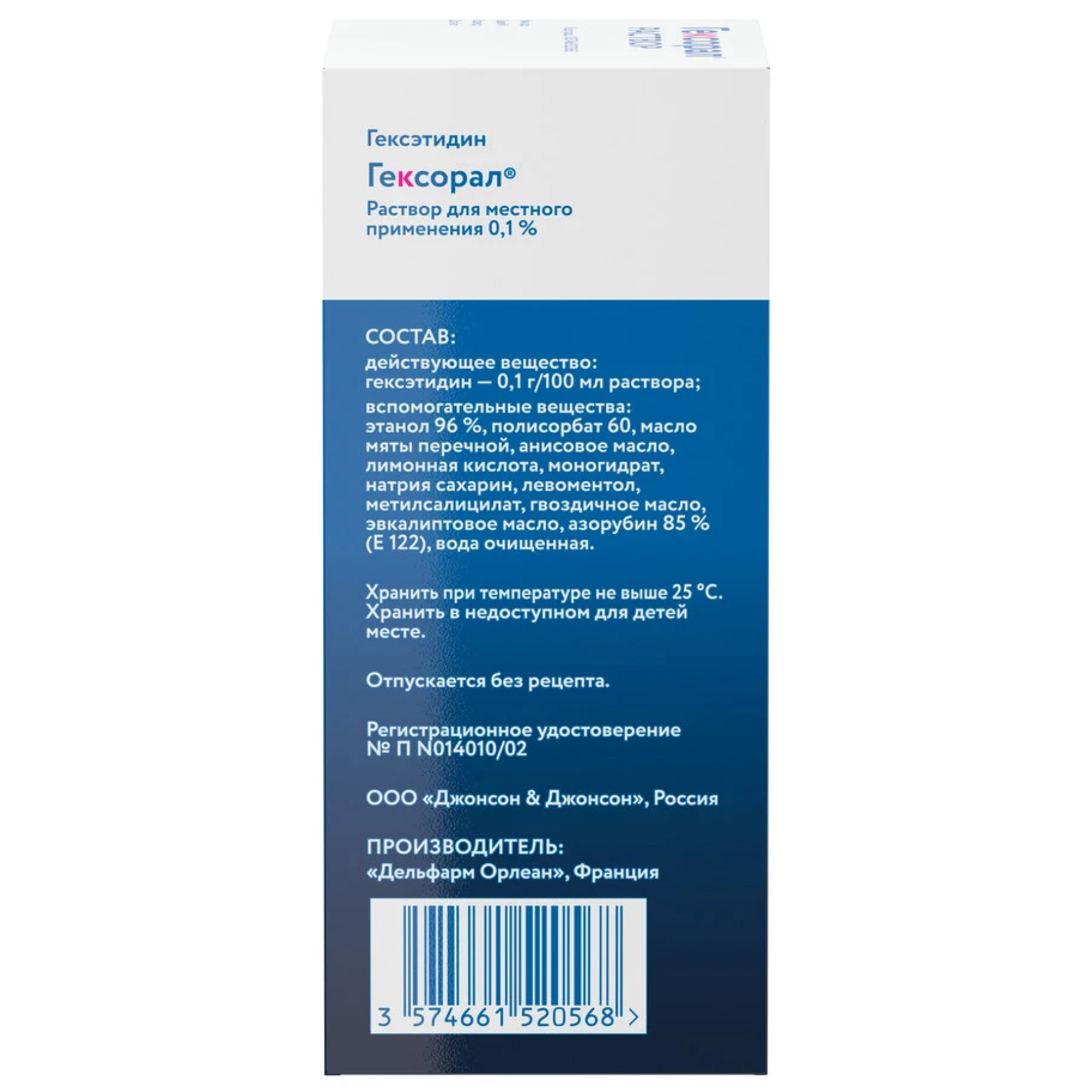 Гексорал® раствор для местного применения содержит этанол 96% (4.3333 г/100 мл раствора).