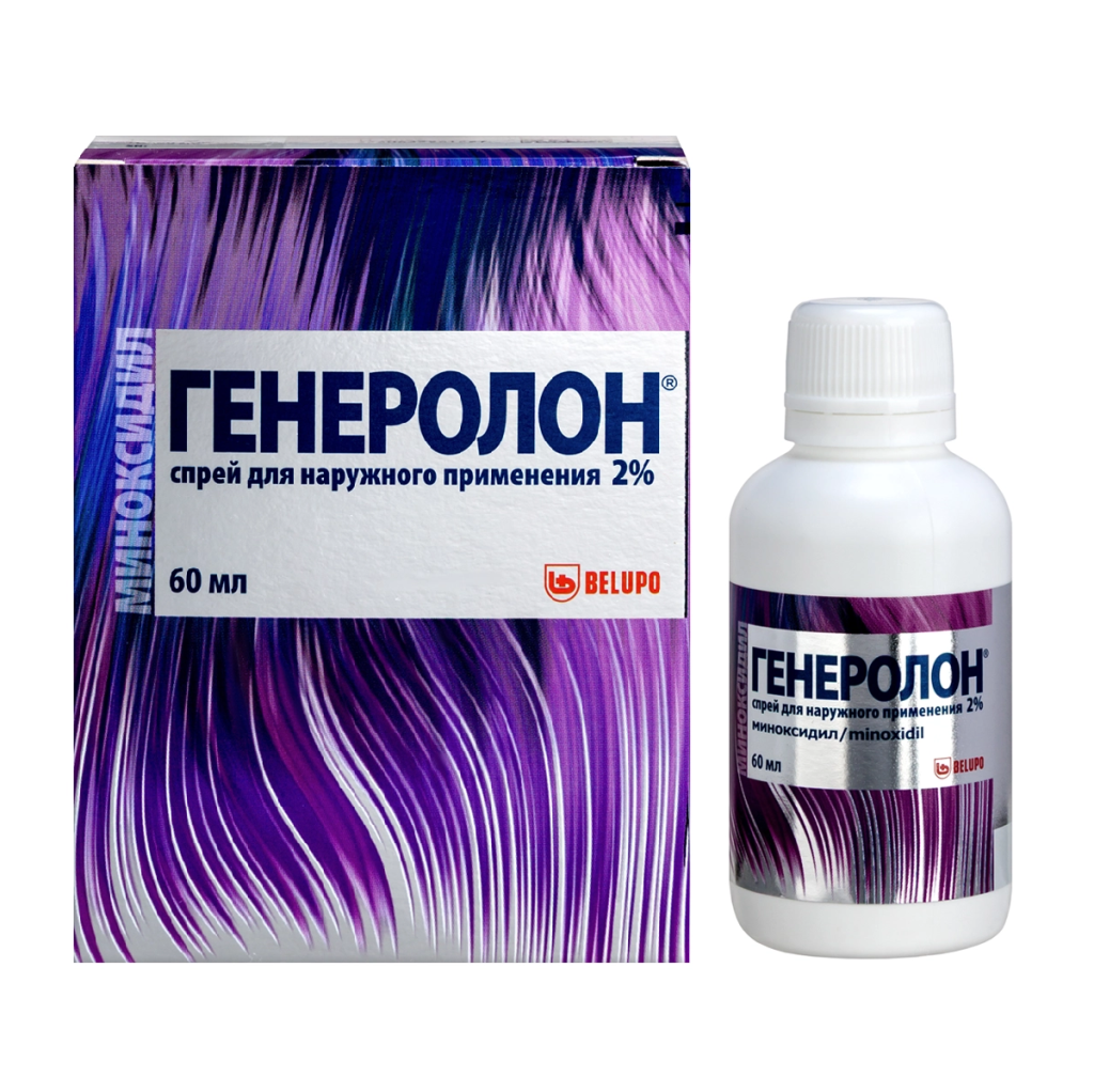 При местном применении миноксидила стимулирует рост волос у лиц с андрогенной алопецией (поредением волос, облысением). Улучшает микроциркуляцию, стимулирует переход волосяных клеток в активную растущую фазу, изменяет воздействие андрогенов на волосяные мешочки. Уменьшает образование 5-альфа-дегидростерона (возможно, опосредованно), который играет существенную роль в формировании облысения. Наилучший эффект оказывает при небольшой давности заболевания (не более 10 лет), молодом возрасте пациентов, лысине в области темени не более 10 см, наличии в центре лысины более 100 пушковых и терминальных волос. Проявление признаков роста волос отмечается через 4 и более месяцев применения препарата. Начало и степень выраженности эффекта могут колебаться у разных больных. 5 %-ый раствор препарата стимулирует рост волос сильнее, чем 2 %-ый растврр, что было отмечено по увеличению роста пушковых волос: После прекращения применения препарата Генеролон рост новых волос приостанавливается, и в течение 3-4 месяцев-возможно восстановления исходного внешнего вида. Точный механизм действия препарата Генеролон при лечении андрогенной алопеции неизвестен. Миноксидил неэффективен в случае облысения, вызванного приемом лекарственного средства, неправильным питанием (дефицит железа (Fе), витамина А), в результате укладки волос в тугие прически.