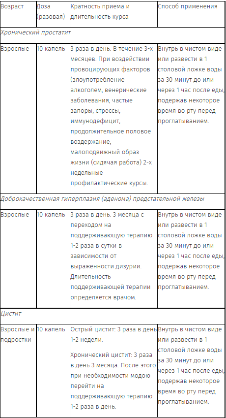 Применяется в комплексном лечении острых и хронических заболеваний предстательной железы (доброкачественная гиперплазия предстательной железы, простатит) для ослабления симптомов указанных заболеваний, при лечении заболеваний мочевого пузыря (цистит, атония мочевого пузыря).