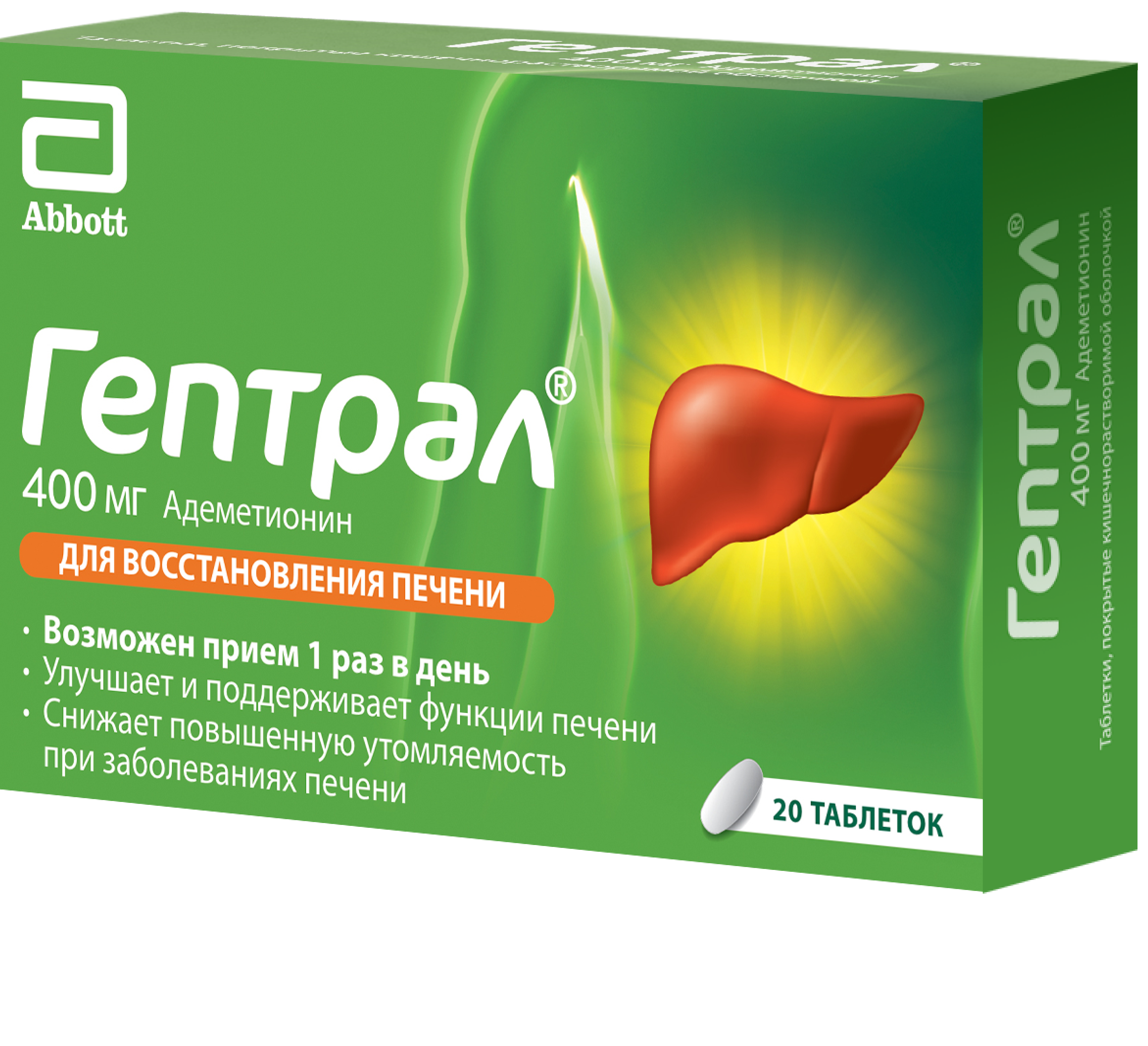 Препарат Гептрал® применяется у взрослых в возрасте от 18 лет в качестве вспомогательной терапии при установленных хронических заболеваниях печени, для улучшения и поддержания ее функций; при повышенной утомляемости при установленных хронических заболеваниях печени.