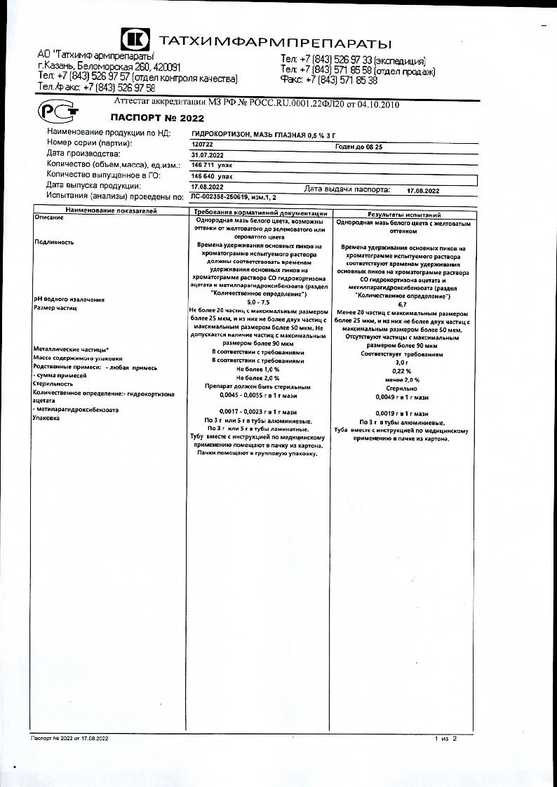 Активное вещество: гидрокортизона ацетат - 0,5 г.