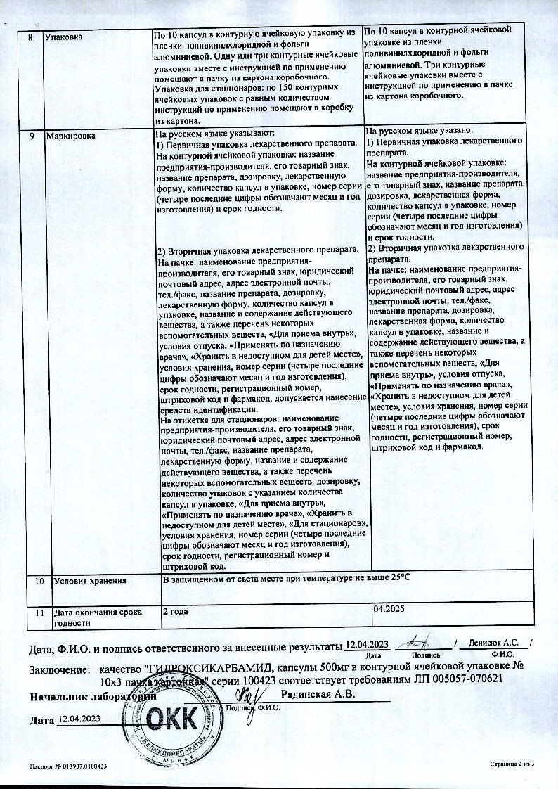 Следует соблюдать осторожность при назначении гидроксикарбамида лицам пожилого возраста и детям (требуется уменьшение доз), а также пациентам, которым ранее проводилась лучевая терапия или лечение цитостатиками. Перед началом лечения показана коррекция глубокой анемии (переливание препаратов цельной крови). В процессе лечения необходимо регулярно контролировать картину крови (не реже 1 раза в месяц) При снижении уровня лейкоцитов ниже 2500 клеток/мм3 и тромбоцитов ниже 100000 клеток/мм3 курс лечения прерывают до появления четкой тенденции к нормализации гематологических показателей. Рекомендуется также динамический контроль за уровнем мочевой кислоты, креатинина, трансаминаз; при снижении клиренса креатинина менее 10 мл/мин дозу препарата следует уменьшить в 2 раза. Во время лечения больные должны употреблять достаточное количество жидкости.