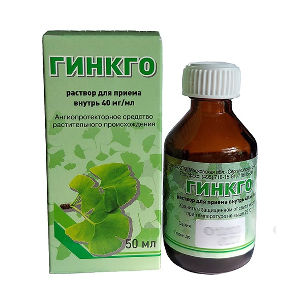 Активное вещество: гинкго двулопастного листьев экстракт сухой 4 г, с содержанием суммы гинкгофлавонгликозидов (в пересчете на рутин и сухое вещество) 24%.