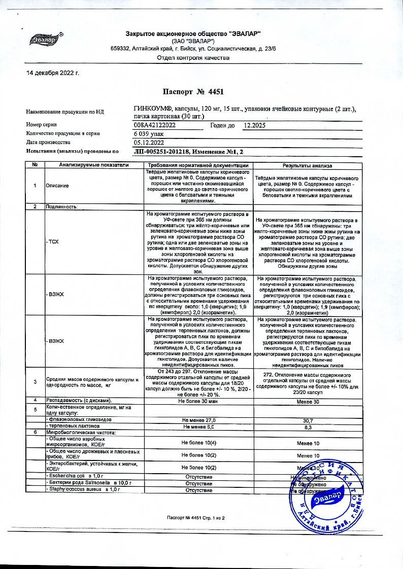 Максимальные концентрации в плазме крови составляют: 15 нг/мл для гинкголида А, 4 нг/мл для гинкголида В и приблизительно 12 нг/мл для билобалида. Связывание с белками плазмы крови составляет: 43% для гинкголида А, 47% для гинкголида В и 67% для билобалида.