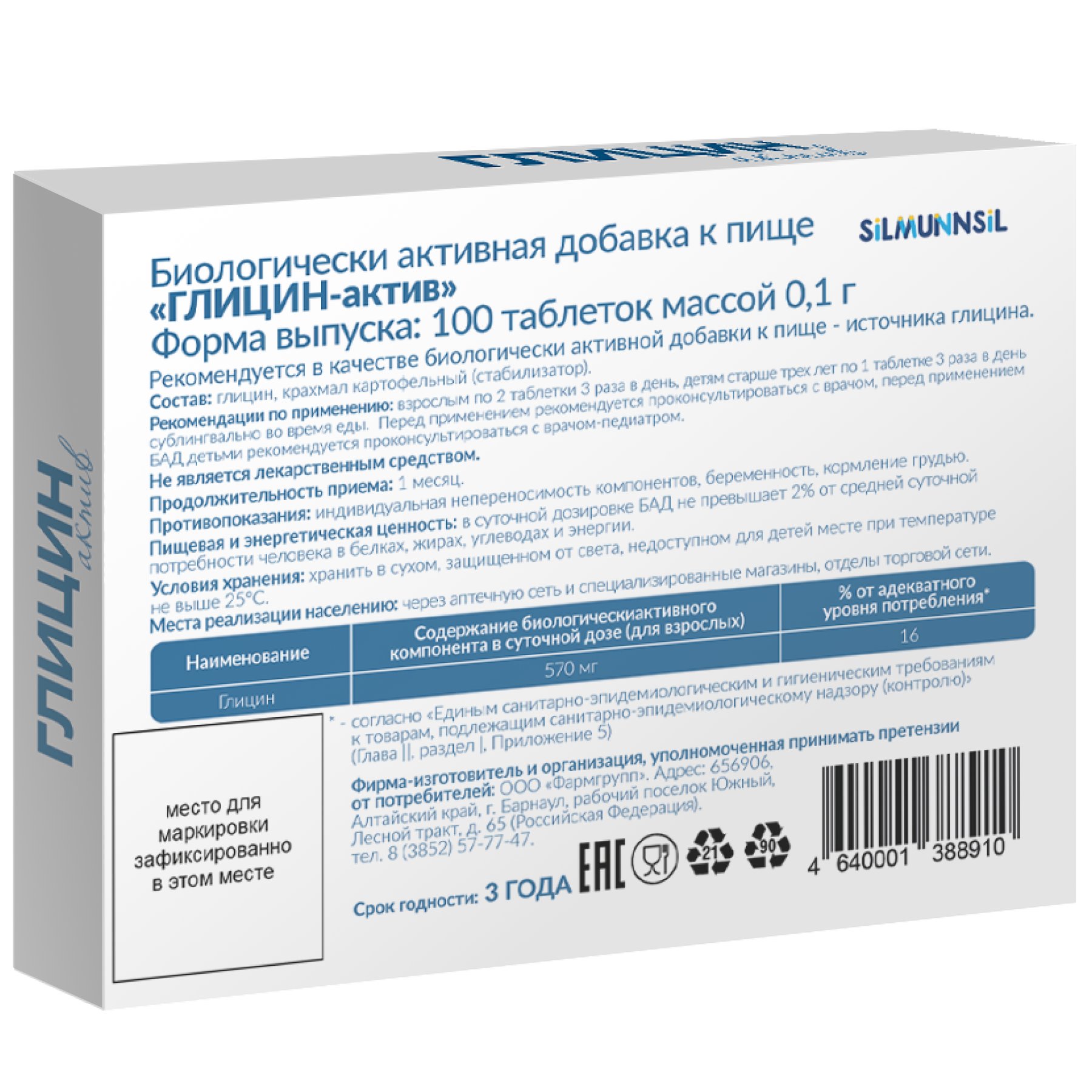 БАД (SILMUNNSIL/Cилмуннсил) не является лекарственным средством. Для реализации населению через аптечную сеть и специализированные магазины, отделы торговой сети. Претензии потребителей принимаются по адресу фирмы – производителя.