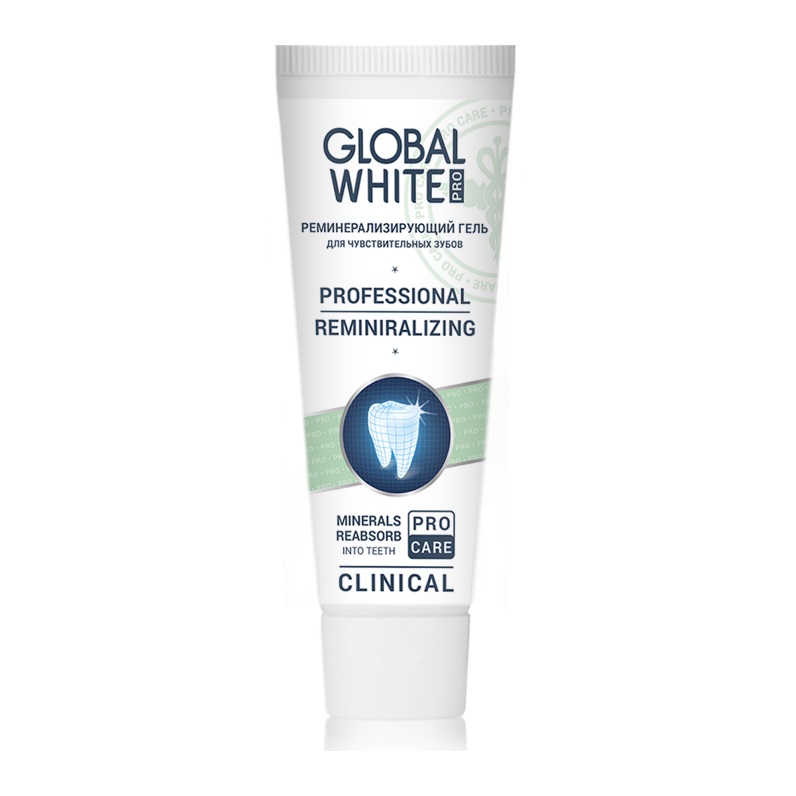 Комплекс полезных минералов и компонентов для зубов. При нанесении геля на эмаль образуется прозрачная пленка, с помощью которой минералы постепенно встраиваются в структуру зуба, восстанавливая природный баланс в его тканях. Гель не только укрепляет эмаль во время курса отбеливания, но и снижает симптомы чувствительности. Минеральный комплекс (кальций, магний, фтор, фосфаты) - восполняет баланс минералов в тканях зуба.