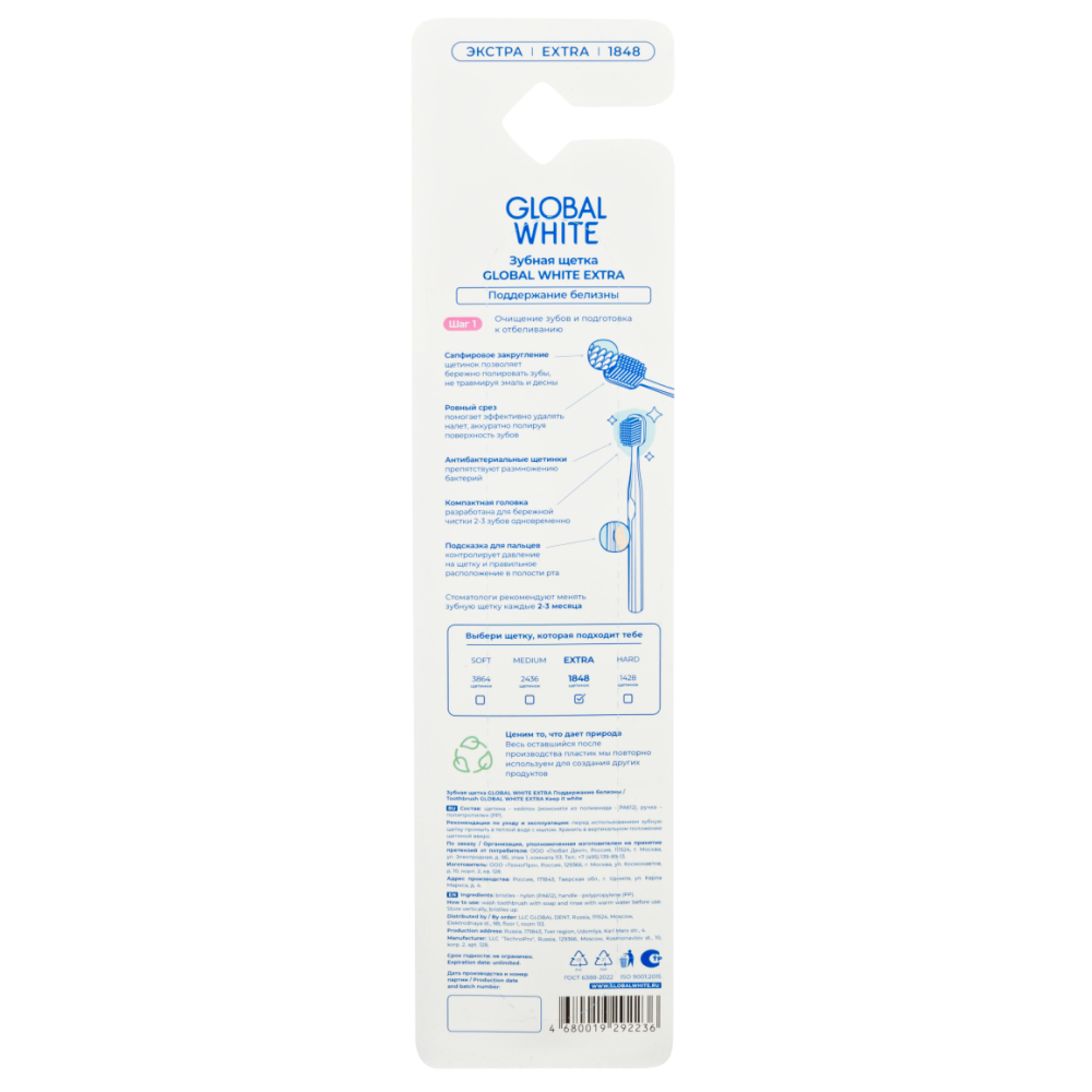 Global White зубная щетка экстра поддержание белизны (арт. 10051747) купить по цене 419 ₽ в интернет аптеке в Москве и Московской области — Aptstore