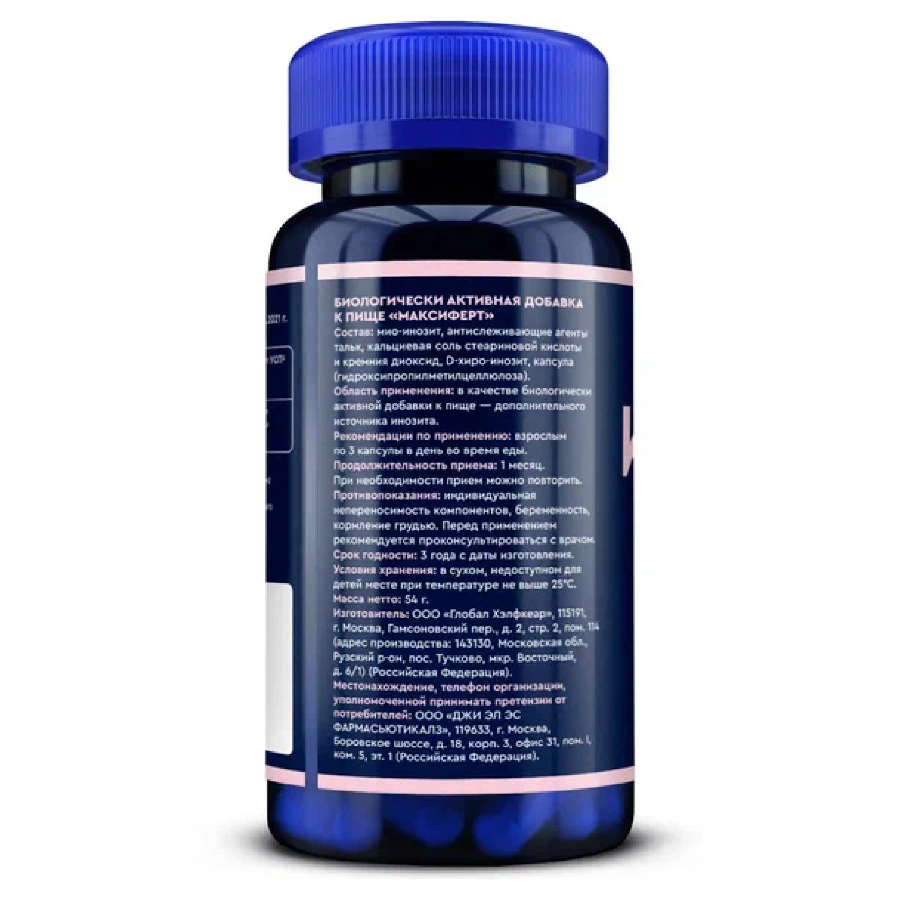 3 вегетарианские капсулы содержат: Мио-инозитол 1000 мг, D-хиро-инозитол 26 мг