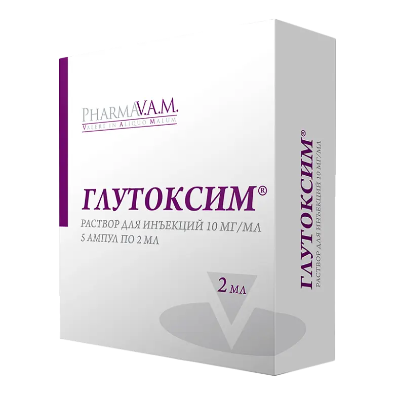 У отдельных больных может наблюдаться незначительное повышение температуры (до 37,1° С - 37,5° С), болезненность в месте инъекции препарата. При плохой субъективной переносимости болезненности Глутоксим® вводят вместе с 1-2 мл 0,5% раствора новокаина.