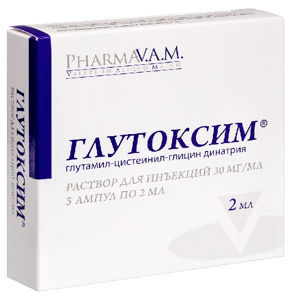 У отдельных больных может наблюдаться незначительное повышение температуры (до 37,1° С - 37,5° С), болезненность в месте инъекции препарата. При плохой субъективной переносимости болезненности Глутоксим® вводят вместе с 1-2 мл 0,5% раствора новокаина.