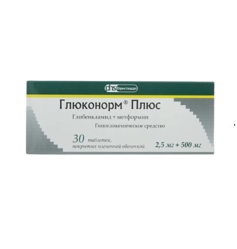 Препарат Глюконорм® Плюс представляет собой фиксированную комбинацию двух пероральных гипогликемических средств различных фармакологических групп: метформина и глибенкламида.