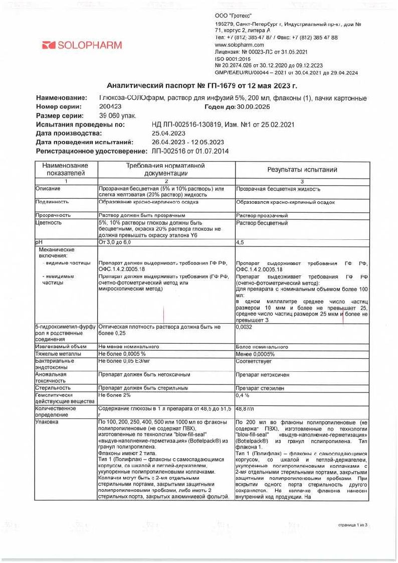 5% раствор глюкозы: