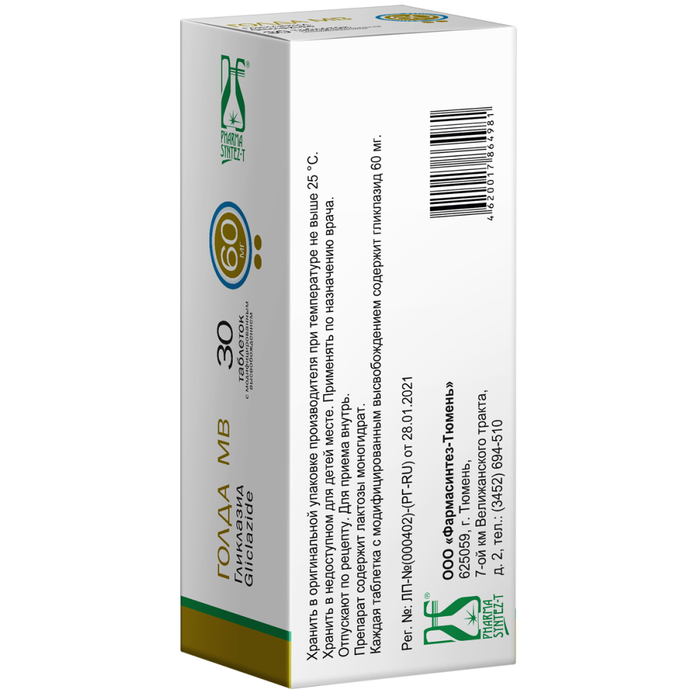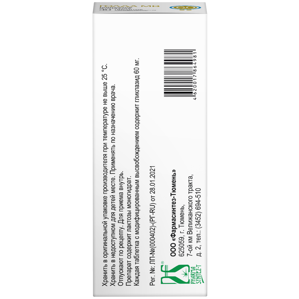 Начальная рекомендуемая доза (в том числе для пациентов пожилого возраста > 65 лет) гликлазида пролонгированного действия 30 мг в сутки (1 таблетка гликлазида пролонгированного действия 30 мг или ½ таблетки гликлазида пролонгированного действия 60 мг).