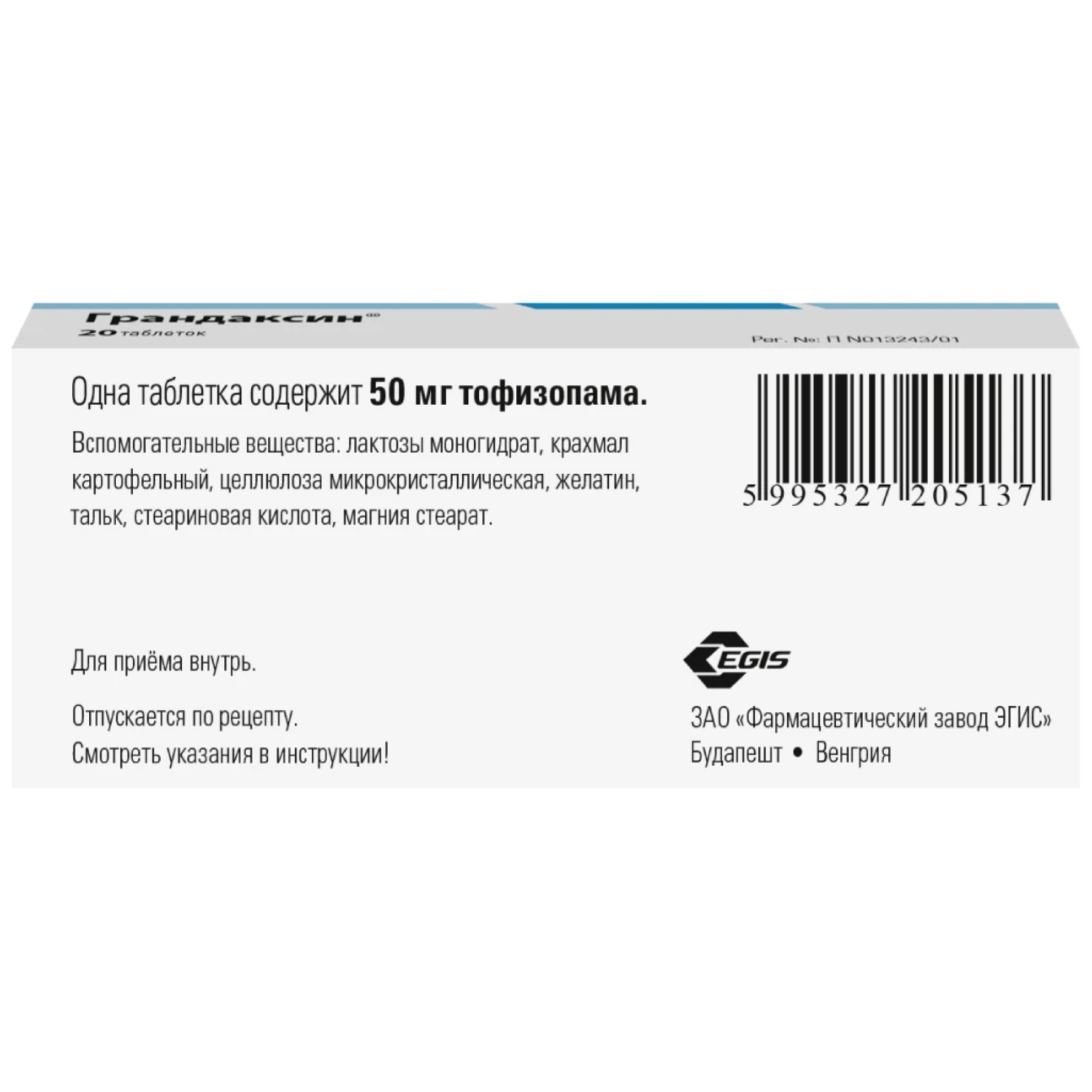 Каждая таблетка Грандаксина содержит 92 мг лактозы, что следует учитывать пациентам с непереносимостью лактозы.