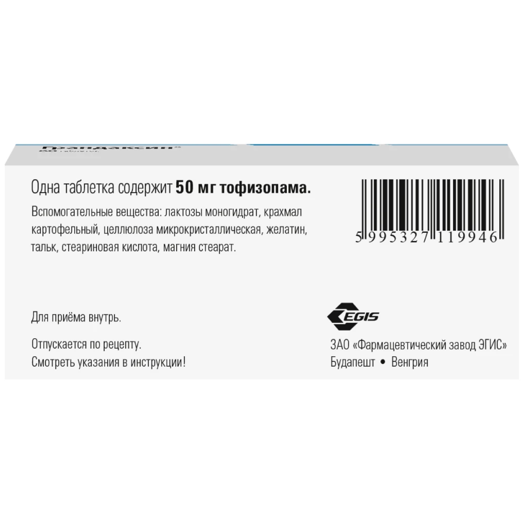 Каждая таблетка Грандаксина содержит 92 мг лактозы, что следует учитывать пациентам с непереносимостью лактозы.
