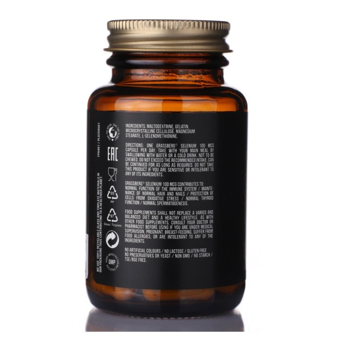 Если у вас возникают трудности с правильным питанием и ваш график далек от идеала, в качестве решения по недостатку селена, вы можете использовать Selenium 100 mcg от Grassberg. Сбалансированная дозировка активного вещества в этом продукте, позволяет употреблять его регулярно. Ведь если у вас будет превышение или передозировка селена в организме, вы получите обратный эффект, который может вызвать такие проблемы как: ломкие волосы, развитие нейропатии, диарея, хрупкие ногти.