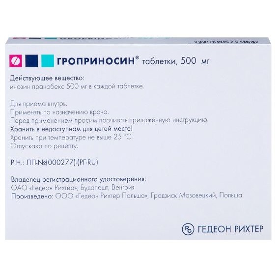 На фоне лечения препаратом Гроприносин® следует каждые 2 недели проводить контроль содержания мочевой кислоты в сыворотке крови и в моче. Контроль активности печеночных ферментов рекомендуется проводить каждые 4 недели при длительных курсах лечения препаратом.