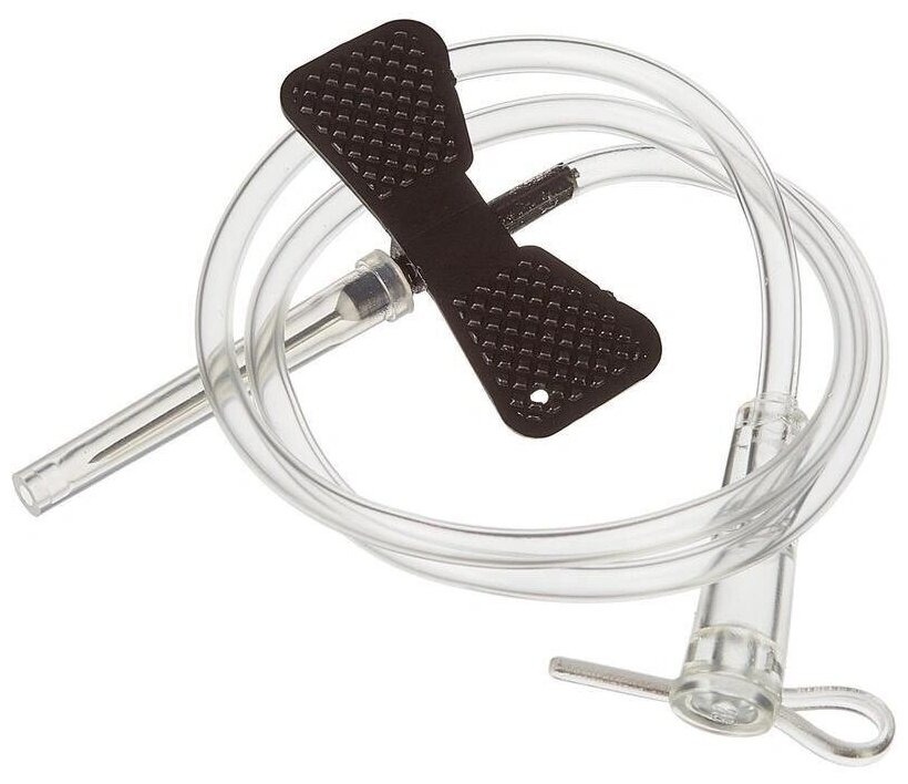 Игла “бабочка” называется так из-за пластиковых крыльев, которые позволяют прочно зафиксировать устройство на теле пациента.
