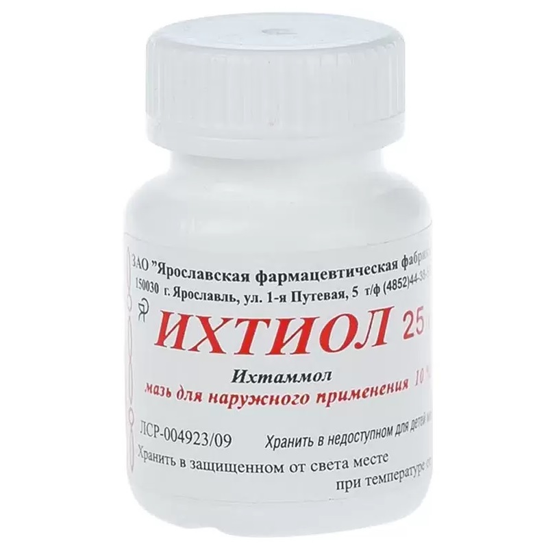 Активное вещество: ихтаммол (ихтиол) 10,0 г.