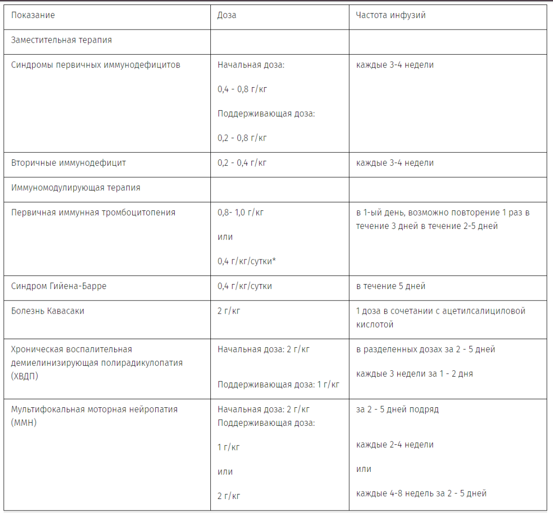 * - режим дозирования основан на данных клинического исследования лекарственного препарата Иммуноглобулин человека нормальный.