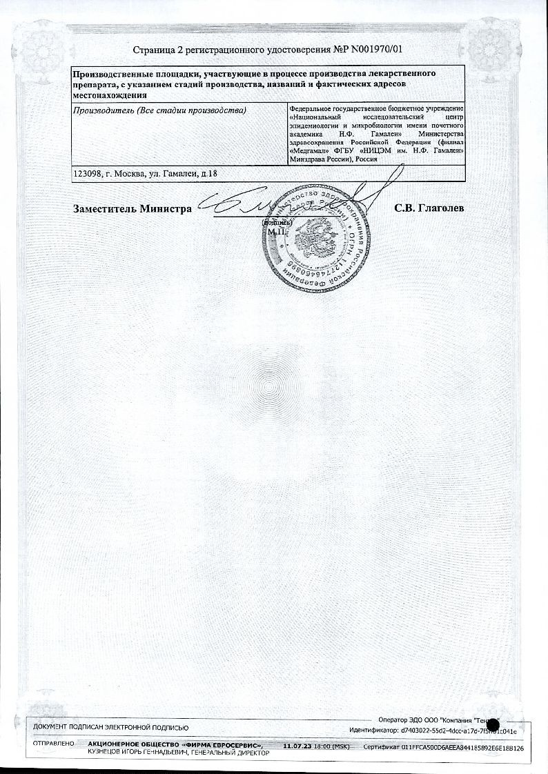 Препарат хранят по СП 3.3.2.1248-03 при температуре от 0 до 8 °С, в оригинальной упаковке с целью защиты от света.
