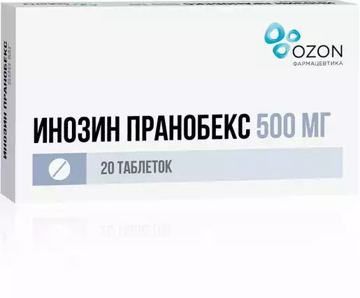 Иммуностимулирующее средство с неспецифическим противовирусным действием. Представляет собой комплекс, содержащий инозин и соль 4-ацетамидобензойной кислоты с N,N-диметиламино-2-пропанолом в молярном соотношении 1:3. Эффективность комплекса определяется присутствием инозина, второй компонент повышает его доступность для лимфоцитов. Восстанавливает функции лимфоцитов в условиях иммунодепрессии, повышает бластогенез в популяции моноцитарных клеток, стимулирует экспрессию мембранных рецепторов на поверхности Т-хелперов, предупреждает снижение активности лимфоцитарных клеток под влиянием глюкокортикоидов, нормализует включение в них тимидина. Изопринозин оказывает стимулирующее влияние на активность цитотоксических Т-лимфоцитов и естественных киллеров, функции Т-супрессоров и Т-хелперов, повышает продукцию IgG, интерферона гамма, интерлейкинов (ИЛ)-1 и ИЛ-2, снижает образование провоспалительных цитокинов - ИЛ-4 и ИЛ-10, потенцирует хемотаксис нейтрофилов, моноцитов и макрофагов. Проявляет противовирусную активность in vivo в отношении вирусов Herpes simplex, цитомегаловируса и вируса кори, вирус Т-клеточной лимфомы человека тип III, полиовирусов, гриппа А и В, ЕСНО-вирус (энтероцитопатогенный вирус человека), энцефаломиокардита и конского энцефалита. Механизм противовирусного действия связан с ингибированием вирусной РНК и фермента дигидроптероатсинтетазы, участвующего в репликации некоторых вирусов. Усиливает подавленный вирусами синтез мРНК лимфоцитов, что сопровождается подавлением биосинтеза вирусной РНК и трансляции вирусных белков, повышает продукцию лимфоцитами интерферонов альфа и гамма, обладающих противовирусными свойствами Уменьшает клинические проявления вирусных заболеваний, ускоряет реконвалесценцию, повышает резистентность организма. При применении в качестве вспомогательного лекарственного средства при инфекционном поражении слизистых оболочек и кожи, вызванном вирусом Herpes simplex, происходит более быстрое заживление пораженной поверхности, чем при лечении традиционным способом. Реже возникают новые пузырьки, отек, эрозии и рецидивы болезни. При своевременном применении инозина пранобекса уменьшается частота возникновения вирусных инфекций, снижается длительность и тяжесть заболевания.
