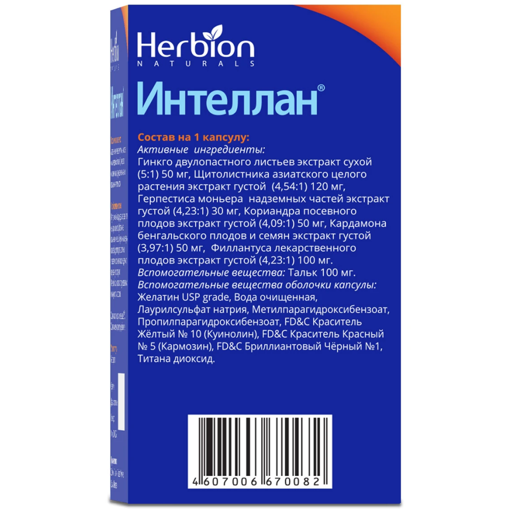Интеллан является сбалансированным препаратом из растительных экстрактов, богатых биоактивными алкалоидами, флавоноидами, сапонинами, гликозидами, аминокислотами, витаминами и необходимыми микроэлементами. Препарат усиливает функцию памяти, умственную деятельность, активирует нейротрансмиттерные центры, подавляет беспокойство и депрессию.