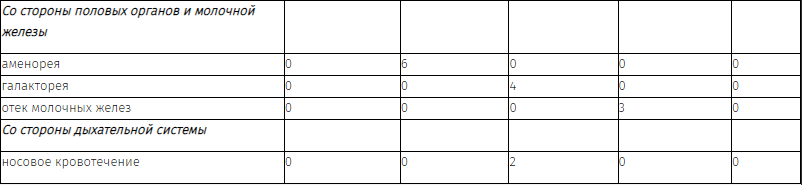 Нарушения со стороны половых органов и молочной железы: нечастые - снижение либидо, аноргазмия, выделения из сосков, эректильная дисфункция, гинекомастия, изменения менструального цикла, дискомфорт в груди, сексуальная дисфункция, вагинальные выделения, нарушение эякуляции, нагрубание молочных желез; очень редкие - приапизм.