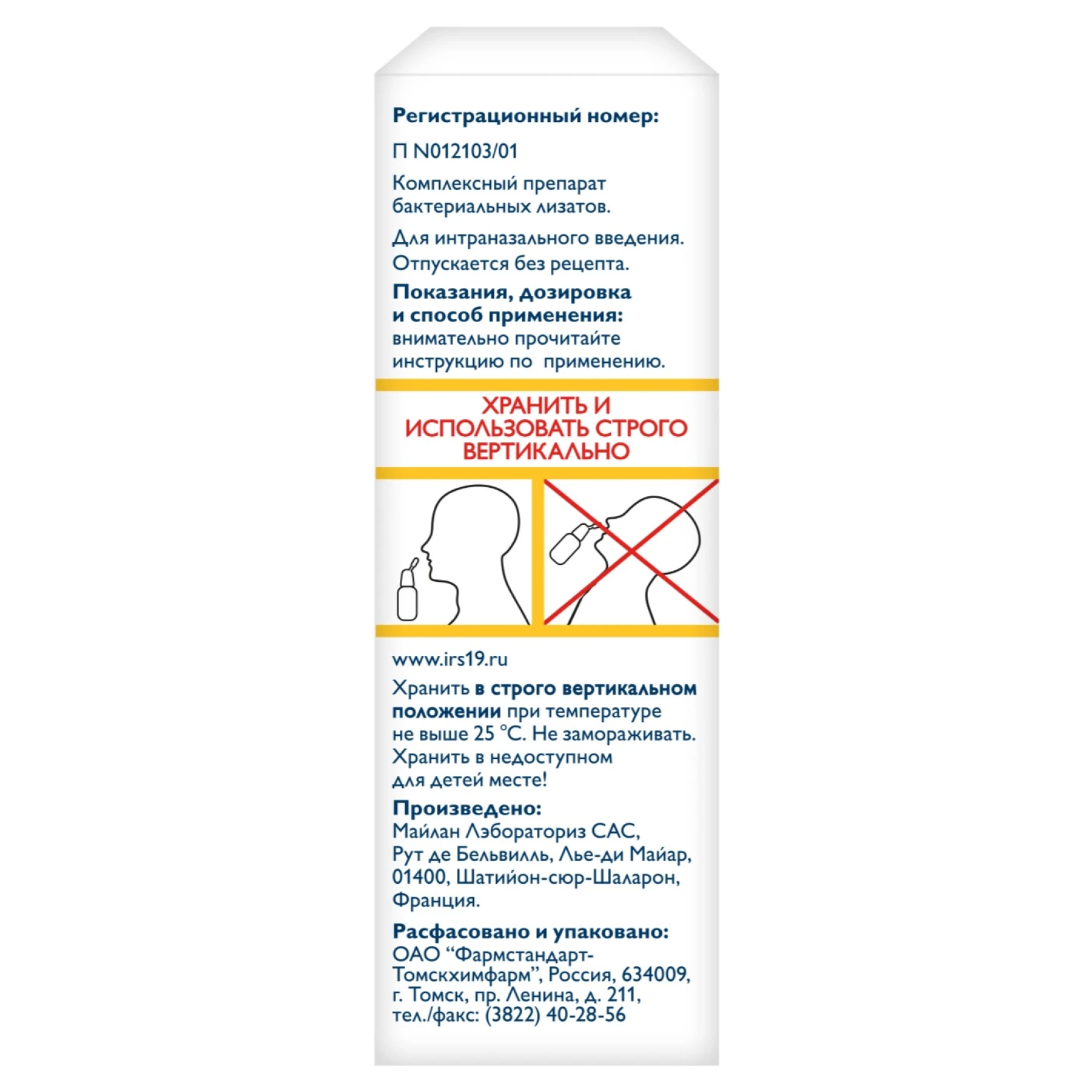 При распылении ИРС® 19 образуется мелкодисперсный аэрозоль, который покрывает слизистую оболочку носа, что приводит к быстрому развитию местного иммунного ответа. Специфическая защита обусловлена локально образующимися антителами класса секреторных иммуноглобулинов типа A (IgA), препятствующими фиксации и размножению возбудителей инфекции на слизистой.