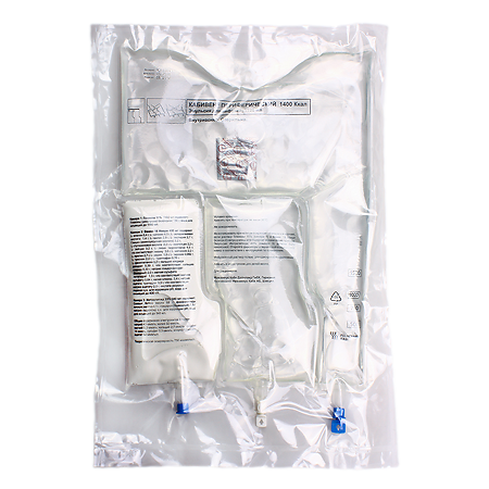Мешок объемом 1920 мл содержит: глюкоза 11% - 1180 мл, вамин 18 Новум - 400 мл, интралипид 20% - 340 мл. Энергетическая ценность - 1400 ккал Осмолярность - около 750 мОсм/л рН 5,4 - 5,8