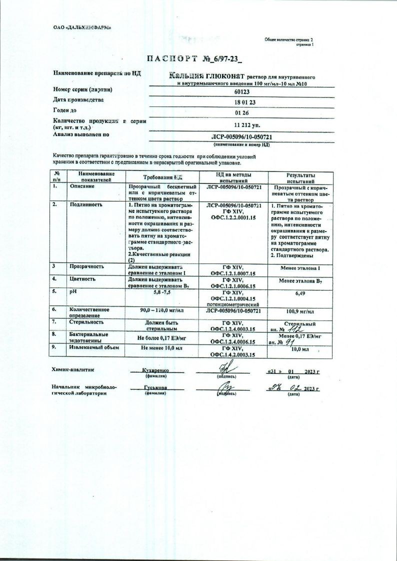Для внутривенной инфузии препарат разбавляют в соотношении 1:10 до концентрации 10 мг/мл следующими растворами для инфузий: 0,9 % раствором натрия хлорида или 5 % раствором глюкозы. Скорость внутривенного введения не должна превышать 50 мг кальция глюконата в минуту. Разбавление следует проводить в асептических условиях.