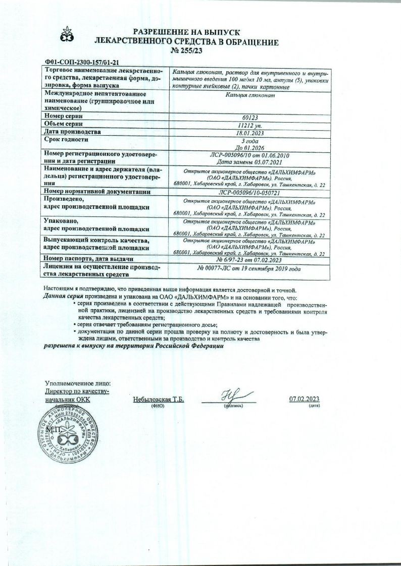 После парентерального введения кальция глюконат с током крови равномерно распределяется во всех тканях и органах. В плазме крови кальций находится как в связанной форме (в комплексе с белками и с анионами органических и неорганических кислот (бикарбонат, фосфат, лактат, цитрат кальция)), так и в свободной ионизированной форме. Проникает через плацентарный барьер, попадает в грудное молоко. Выводится из организма в основном почками.